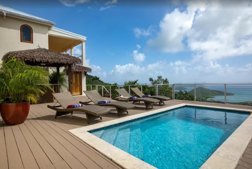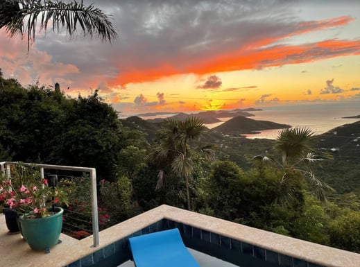 Come to Bay Rum Breeze to experience a luxurious and relaxing vacation. Enjoy the cooling breezes and spectacular views of Coral Bay, the east end of St. John and the British Virgin Islands. Experience St. John-beautiful beaches, snorkeling, hiking, sailing, then come back to the villa and relax on the sundeck or take a dip in the pool. Enjoy the fabulous view even as you shower in your private outdoor shower or relax on your private deck. Dine on the covered veranda or inside in the comfortable great room. At night, watch the shooting stars from the stargazing deck. Bay Rum Breeze was designed for the comfort of both couples and families.
