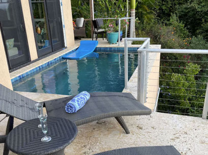 MandeVilla Cottage at Ixora is a perfect for couples. Free standing cottage with amazing views and a 4 min. drive to Maho Bay Beach. Sunrise views of Coral Bay, and even the most amazing sunset view from the stone outdoor shower. Full kitchen to prepare meals and Weber gas grill. Washer Dryer and private parking space. Beautiful space to spend time on St.John. Private pool.