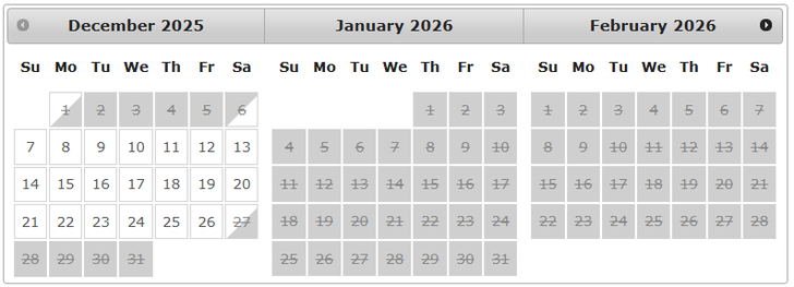Please see our booking calendar and the available dates.