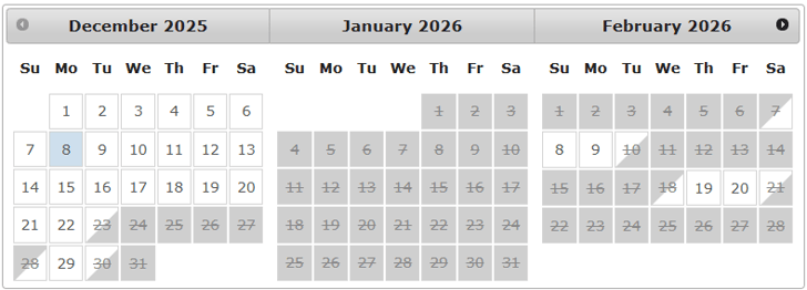 Please see our booking calendar and the available dates.