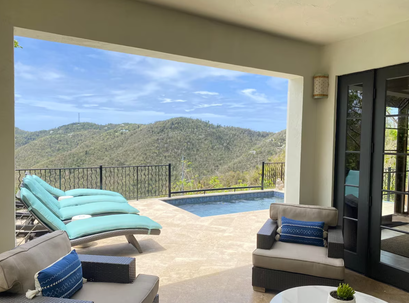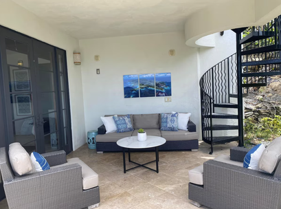 High atop Mamey Peak you will find SAPPHIRE PEAK. SAPPHIRE PEAK is under new ownership and was refreshed in 2022. The mid island location and close proximity to National Park Beaches makes this villa perfect to enjoy all of St. John. Sapphire Peak is equipped with a backup generator to assist the villa during island life power outages that may occur. Amazing views of Bordeaux Mountain, Coral Bay, East End, Norman Island, Peter Island and beyond are visible inside and poolside from SAPPHIRE PEAK. Please enter the total number of people occupying the house for the correct price. The lower bedroom is accessed by circular exterior steps. Not ideal for young children. 4WD is required for the bumpy road to the house. The house has AC and no screens in the windows.