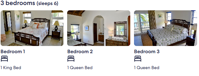 If you’re looking for some privacy, retreat to any of the bright, clean guest rooms where you will have plenty of space to relax with your own covered veranda, complete with lounger and table and chairs. Steps away from the outdoor living space, the pool offers shade from large palms, as well as a sun drenched deck for working on your tan. Each of Sea Palms three bedrooms are also all accessible to the interior of the house which makes it ideal for families!