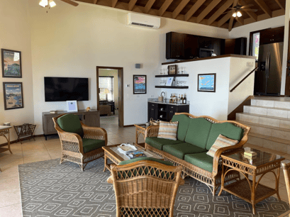 Sea Palms is an ideal escape for any group: conveniently located to town and the idyllic North Shore beaches, yet just far away enough to spend your afternoons quietly overlooking the Caribbean waters. The open layout of this villa keeps everyone involved in the party. No matter if someone is preparing lunch in the well-equipped kitchen, lounging in the living room, or catching a breeze on the covered porch, everybody will be able to be part of the memory making.