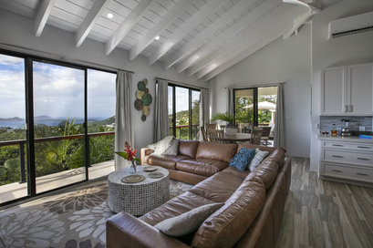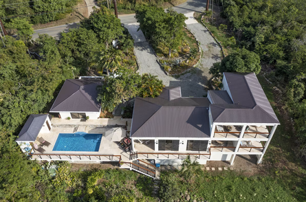 Villa Mad-de-Lis beautiful remodeled 4 bedroom, 41/2 bath, with pool, and sunset views. New to the market in 2023. Located in St. John, US Virgin Islands. Offers stunning sunset views. The main house consists of 2 King Ensuites with private porches with inviting seating areas and couch swings as well as an extremely comfortable Queen Bedroom with adjacent Full Bath.