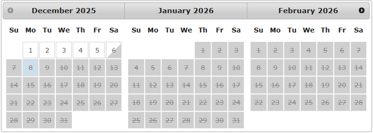 Please see our booking calendar and the available dates.