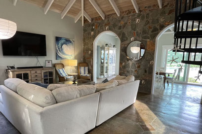 Castaway villa is conveniently located in the Estate Chocolate Hole neighborhood, walking distance to the Westin Hotel and a very short drive to Cruz Bay dining and shopping. A perfect neighborhood for morning runs while enjoying the fantastic views. The villa has recently undergone major exterior renovations to the driveway, exterior lighting, salt water pool and pool deck plus all new exterior furniture. We also just completed the installation of a Tesla back up battery system in order to provide uninterrupted power during power outages.