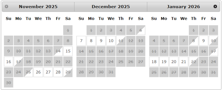 Please see our booking calendar and the available dates.